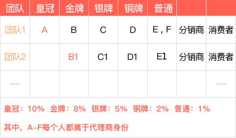 A,B1,C2都是金牌代理的情況下,A可以拿到團隊1下面的所有分銷商的業(yè)績分紅,B1拿到團隊2下面的分銷商分紅,C2拿團隊3的分銷商業(yè)績分紅